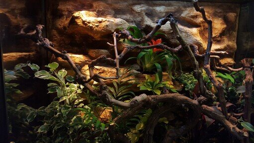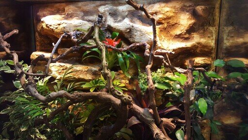 A növények minden esetben élők ami dekor hatása mellett a természetességet is növeli. A nagyobb levelű növényekről, könnyedén lenyalogatják a vizet, igy az itatást is elősegítik. Párologtatásukkal a terrárium megfelelő páratartalmához is hozzá járulnak.
