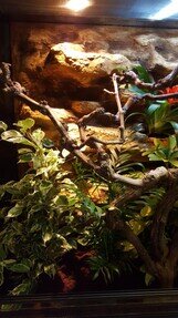 Mászóágaknak szőlőtőkét építek a terráriumba, ami kacskaringós növése miatt kiválóan tökéletesen kielégíti kaméleonja mászkálási igényét.