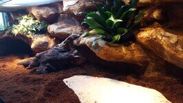 Aljzatnak kiválóan megfelel a kókuszrost, melynek előnyei közé tartozik, hogy szagtalan, természetes, nem penészedik. Kereskedelmi forgalomban kókusz "tégla" formában kapható, ami egy kevés áztatás után válik használhatóvá. Az áztatásnál figyeljen az áztató edény megfelelő méretére. Napozó, vagy etető hely, kialakításához lapos sziklák az aljzatba süllyesztése a legjobb megoldás.